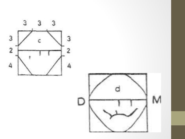 • Cara proximal de forma triangular, muy corta pero más amplia. • La base del triángulo está en el cuello y el vértice muy cerca del área de contacto, hasta donde llega el brazo mesial del borde incisal. • La proyección total de la figura coronaria es más grande que la cara mesial.