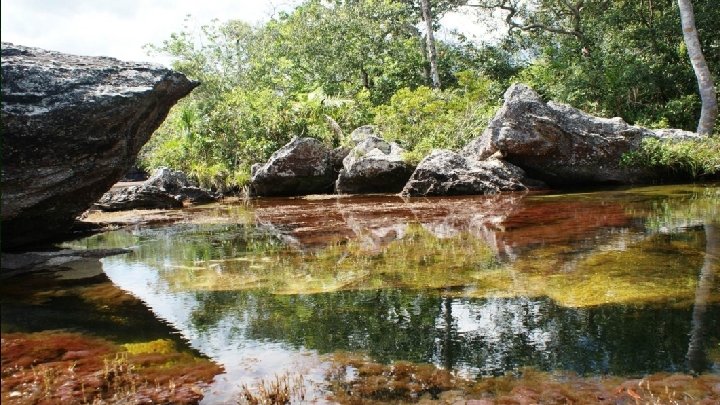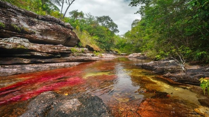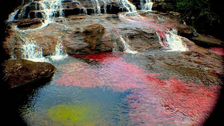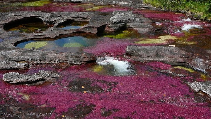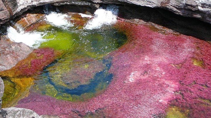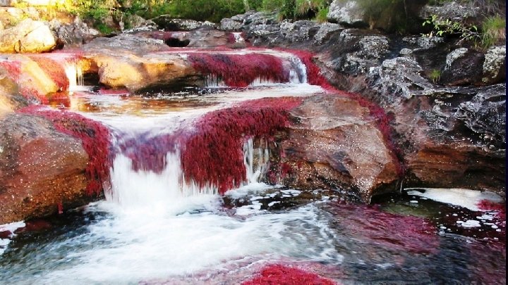 La rivière aussi connu que celui des 5 couleurs, ce qui rend cette pigmentation parce que les pierres sont recouvertes de mousse et d'algues. Jaune, bleu, vert, noir et rouge, sont ses cinq couleurs extravagantes, qui sont expliquées par la présence d'algues de différentes couleurs qui font de ce tuyau une merveille visuelle .