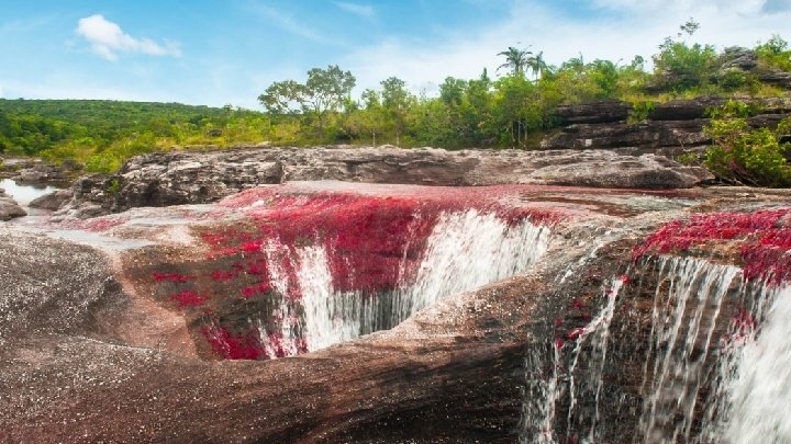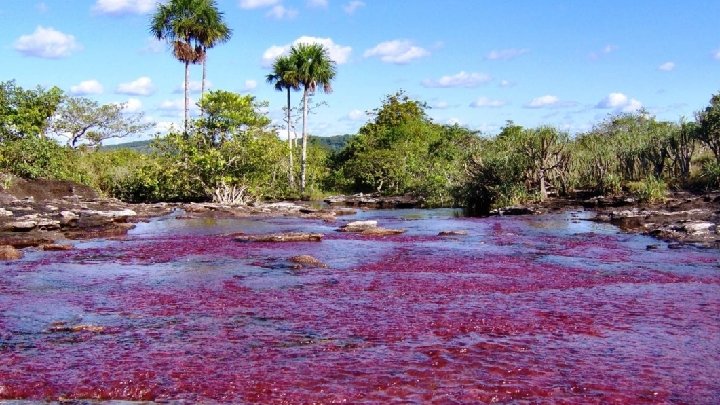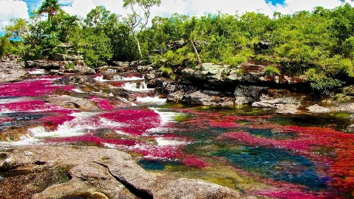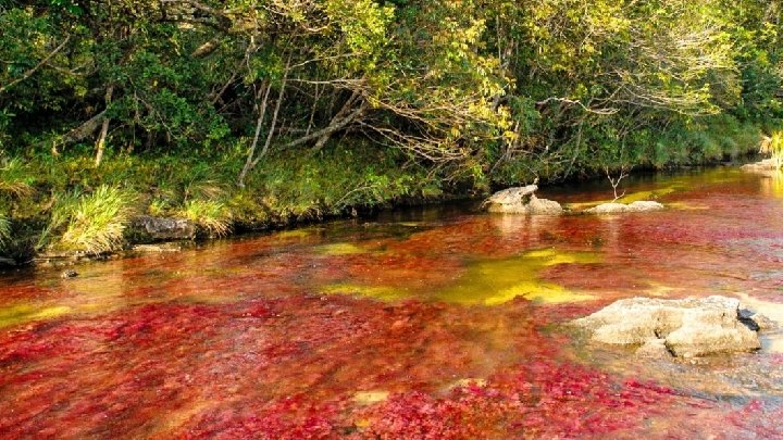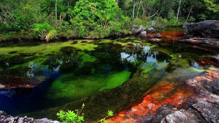 Connu par beaucoup comme «la rivière qui se sont enfuis du paradis" et le plus beau fleuve du monde, Caño Cristales de la Colombie ou de la rivière de cinq couleurs est une merveille biologique véritable. Pour la plupart de l'année, le fleuve reste indéfinissable: courants clairs, les roches grisâtres, eaux fraîches. Toutefois, pour une brève période de temps le clavigera Macarenia, une plante qui tapisse le fond de la rivière, se transforme une teinte brillante de rouge qui est seulement complété par des nuances rayonnantes de excursion sable jaune et sur vert, et Il s'agit d'une courte la l'eau rivièrebleue, , de seulement 100 km et d'autres une piste teintes dans le spectre des couleurs. beaucoup de 20 m de large, donc selon le langage traditionnel de la région il devrait être nommé un tube.