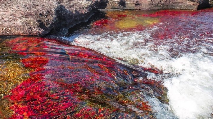 La couleur rouge est due à une plante appelée Macarenia clavigera. Lorsque le niveau d'eau est au point optimal, la mousse et les algues fleurissent avec des couleurs vives, donnant ce visage à la rivière.