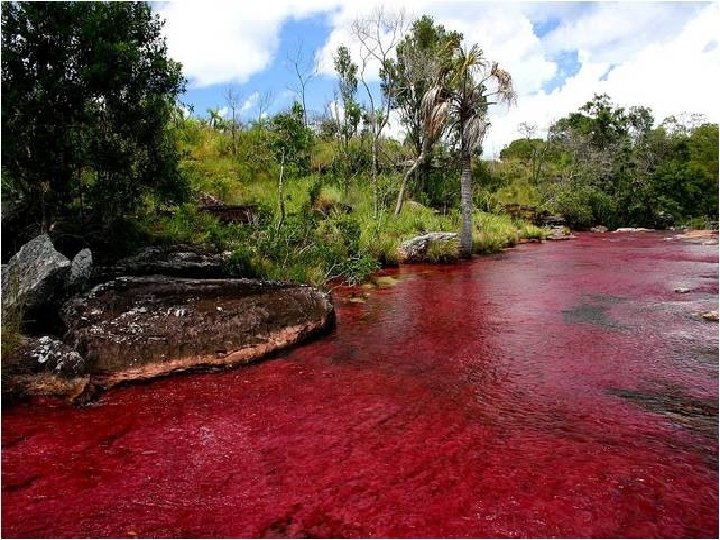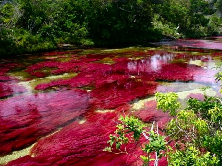 La couleur rouge est due à une plante appelée Macarenia clavigera. Lorsque le niveau d'eau est au point optimal, la mousse et les algues fleurissent avec des couleurs vives, donnant ce visage à la rivière.