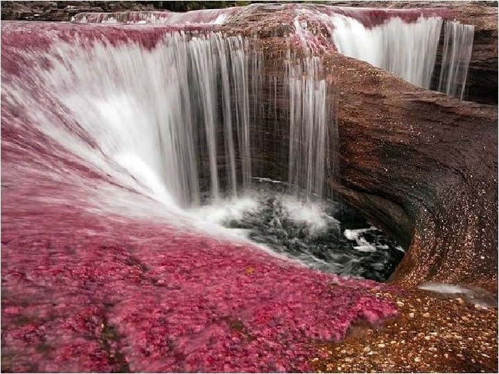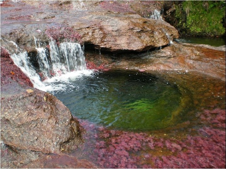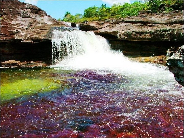. La rivière aussi connu que celui des 5 couleurs, ce qui rend cette pigmentation parce que les pierres sont recouvertes de mousse et d'algues. Jaune, bleu, vert, noir et rouge, sont ses cinq couleurs extravagantes, qui sont expliquées par la présence d'algues de différentes couleurs qui font de ce tuyau une merveille visuelle.