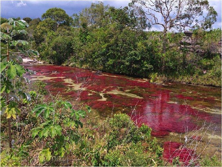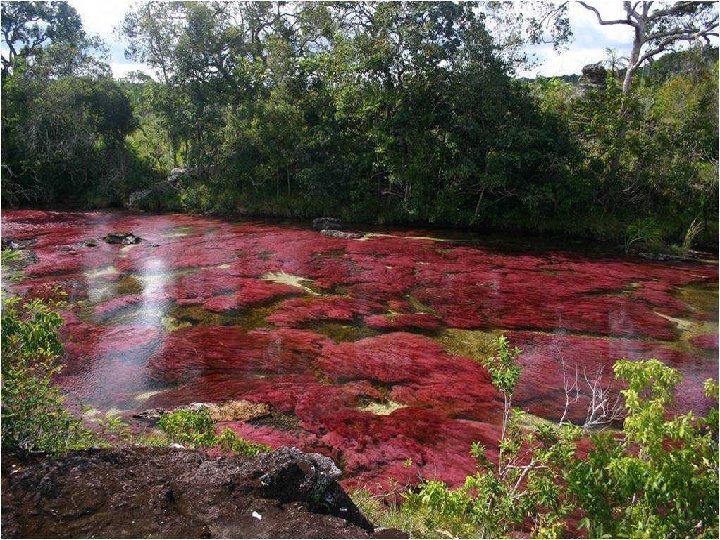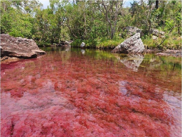 La couleur rouge est due à une plante appelée Macarenia clavigera. Lorsque le niveau