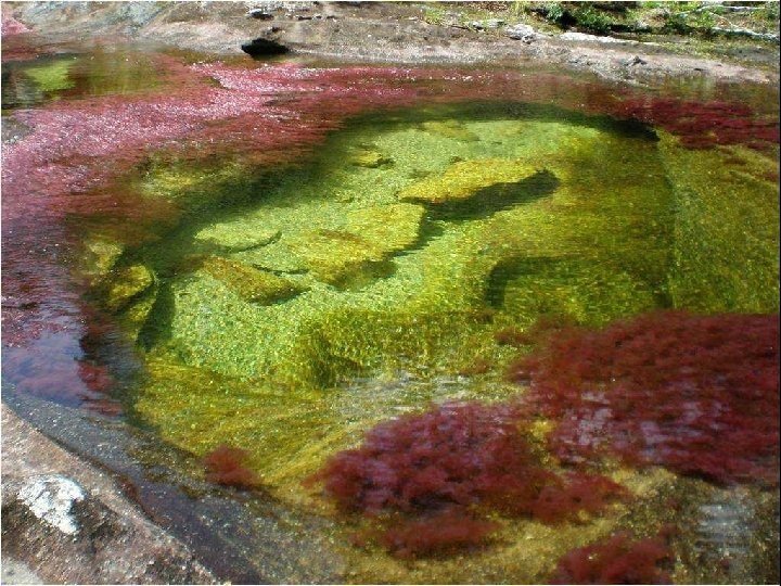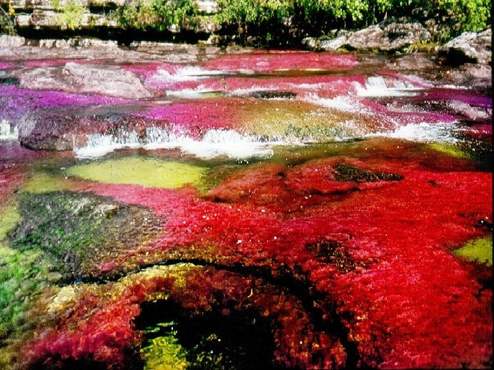 La couleur rouge est due à une plante appelée Macarenia clavigera. Lorsque le niveau d'eau est au point optimal, la mousse et les algues fleurissent avec des couleurs vives, donnant ce visage à la rivière.