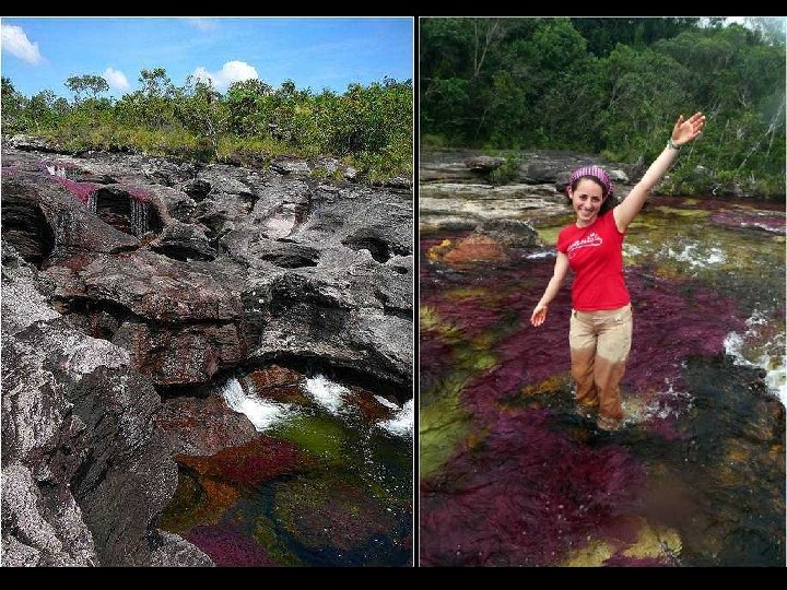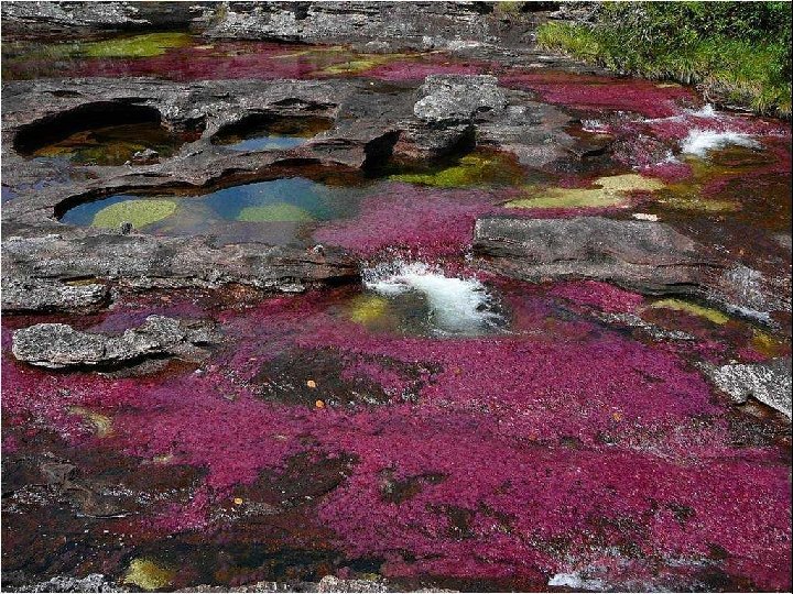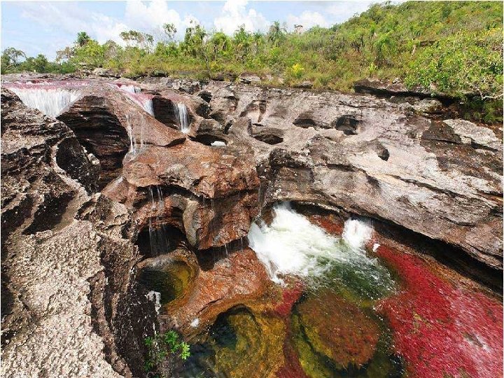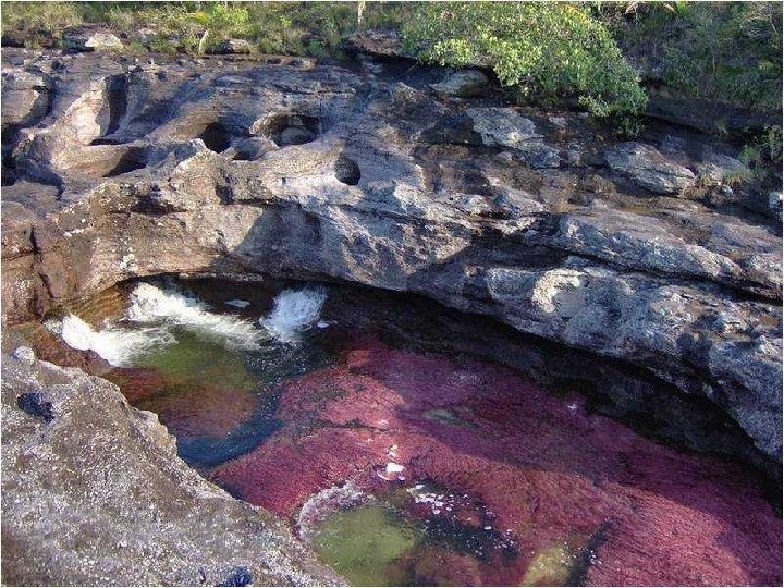 . La rivière aussi connu que celui des 5 couleurs, ce qui rend cette pigmentation parce que les pierres sont recouvertes de mousse et d'algues. Jaune, bleu, vert, noir et rouge, sont ses cinq couleurs extravagantes, qui sont expliquées par la présence d'algues de différentes couleurs qui font de ce tuyau une merveille visuelle.