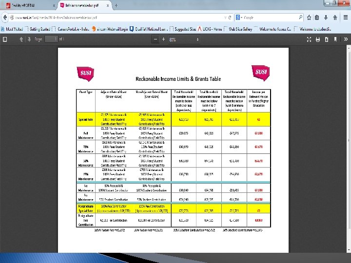 1. Grants � � Applications are completed online at SUSI –Student Universal Support Ireland susi. ie Check out studentfinance. ie website for more information So how much do students get? Max Min 5, 915 305 Most students 3, 025 or Living away (45 km+) 1, 215 Living at home