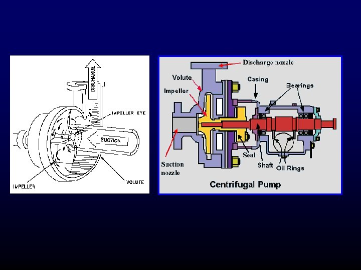 Desvantagens das bombas centrífugas: a) Não servem para altas pressões b) b) Sujeitas à incorporação de ar precisam ser escorvadas c) c) A máxima eficiência da bomba ocorre dentro de um curto intervalo de condições d) d) Não bombeia eficientemente líquidos muito viscosos