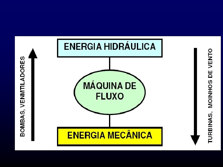 CLASSIFICAÇÃO DAS MÁQUINAS - MÁQUINAS DE FLUIDOS - MÁQUINAS ELÉTRICAS -MÁQUINAS FERRAMENTAS --MÁQUINAS DE FLUIDOS: são aquelas que promovem um intercâmbio entre a energia do fluido e a energia mecânica. - MÁQUINAS HIDRÁULICAS - fluido utilizado para promover o intercâmbio de energia não varia sensivelmente de peso específico (γ) ao passar pela máquina (escoamento incompressível). - MÁQUINAS TÉRMICAS - fluido utilizado para promover o intercâmbio de energia varia sensivelmente de peso específico (γ) ao passar pela máquina.