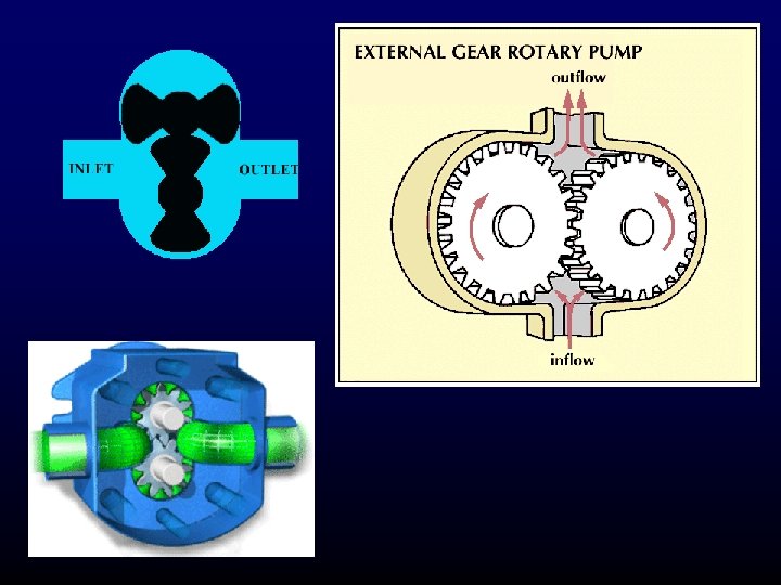 Bombas de deslocamento positivo A energia é fornecida periodicamente, mediante superfícies sólidas móveis, que deslocam porções de fluido desde a sucção até a linha de descarga. A pressão de saída é regulada através de válvulas de descarga unidireccionais. Princípio de funcionamento As bombas de deslocamento positivo liberam um determinado volume de fluido de acordo com a velocidade do sistema. Quando a vazão do processo diminui, a pressão aumenta e o fluxo da bomba deve ser dirigido para outro lugar, de maneira que se evite a sobre-pressurização.