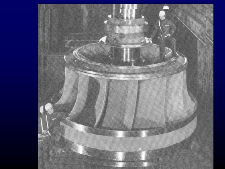 TURBINAS PELTON • A roda Pelton é constituída por um rotor dotado de pás igualmente espaçadas pela sua periferia. As pás são de formato especial para receberem um jato d’água e defleti-l o de 180°. Roda Pelton de 60. 000 cv, para um desnível de 320 m