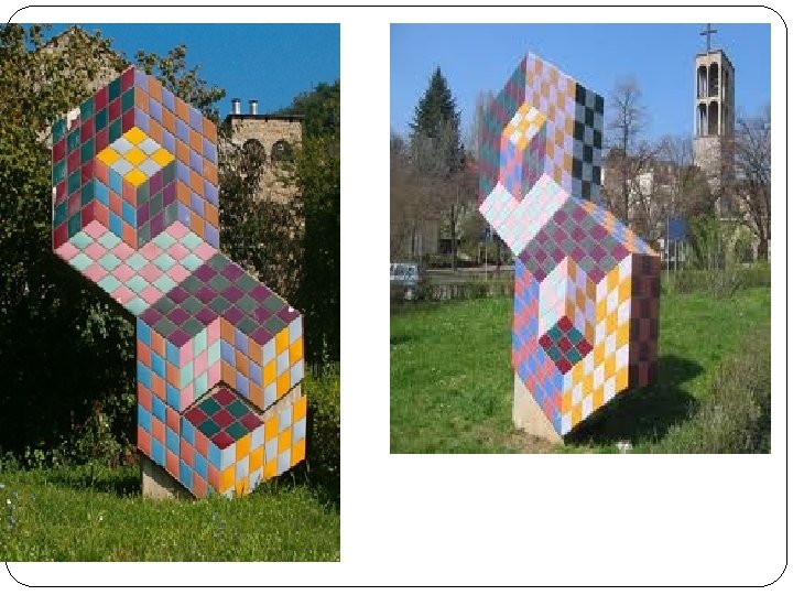A Op Art 0 Do inglês optical art, “arte óptica”; 0 Teve início com os trabalhos do húngaro Victor Vasarely (1908 – 1997); 0 Obras em que figuras geométricas, em preto e branco ou coloridas, são combinadas de modo a causar no observador a sensação de movimento; 0 A obra se modifica constantemente a cada olhar; 0 Arte que simboliza as constantes mudanças na realidade que vivemos; 0 EXPOENTES: Victor Vasarely (1908 – 1997) e Bridget Riley (1931 – ).
