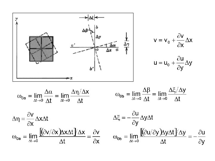 5. 3. 2 Rotação dos fluidos A rotação , , de uma partícula fluida é definida como a velocidade angular média de quaisquer duas linhas perpendiculares que se cruzam nocentro da partícula.