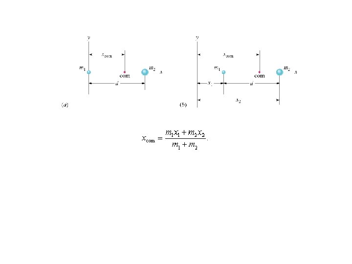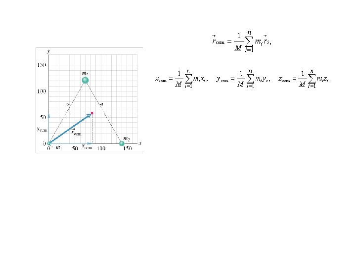 La 2 da Ley para un Sistema de Partículas § Se toman todas las fuerzas externas que actuan sobre cada una de las partículas. Se hace un diagrama de fuerzas poniéndolas todas rabo con rabo (como antes). Se escribe la 2 da ley usando la masa total, i. e. , la suma de todas las masas. La aceleración que aparece en la 2 da ley es la aceleración del centro de masa del sistema.
