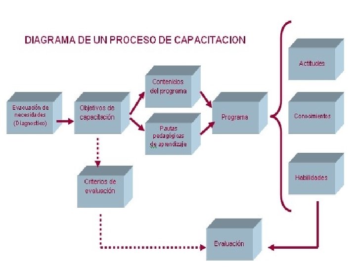 Identificación de Necesidades l l l Análisis a nivel de la organización: la alta dirección debe establecer objetivos estratégicos y sobre esa base definir las necesidades. Análisis de las tareas: definir perfiles de puesto y establecer necesidades a cubrir. Análisis del individuo: realizar evaluaciones de desempeño y encuestas.