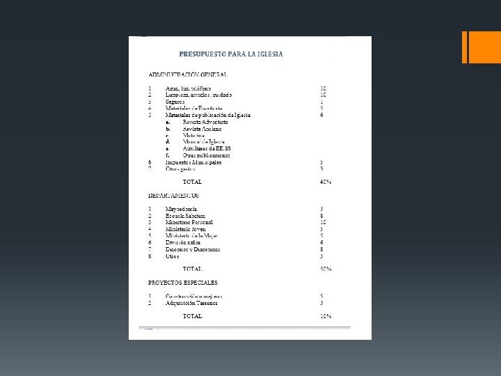 Actividades mensuales § Evaluar el crecimiento de diezmantes y ofrendantes. § El tercer sábado corresponde a la Mayordomía Cristiana, y el director es el responsable de organizar el culto de adoración. §.