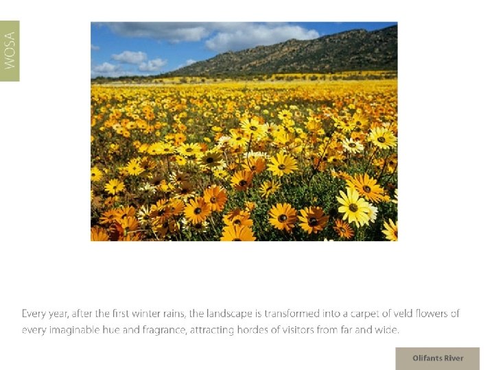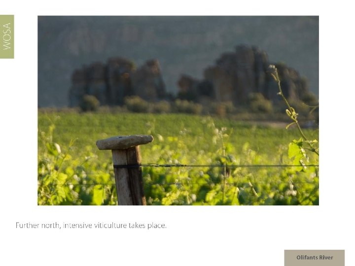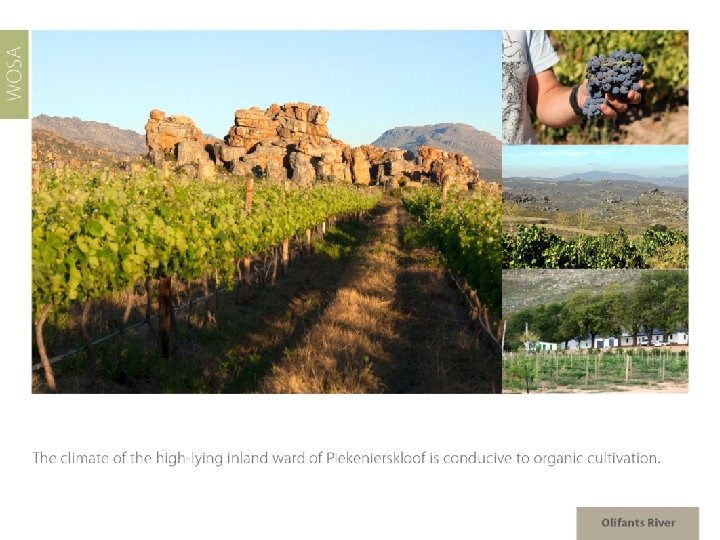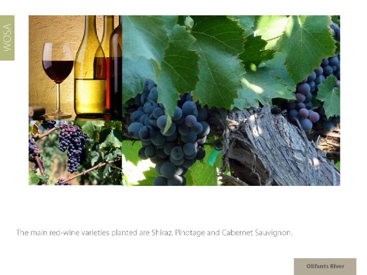 The images used in these presentations have been sourced from various producers, as well as industry and tourism bodies. These presentations are strictly for non-commercial, non-profit, educational purposes only and cannot be reproduced or transmitted in any form or by any means without written permission from Wines of South Africa (WOSA).