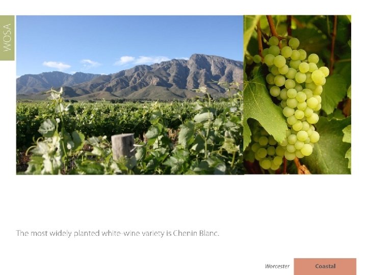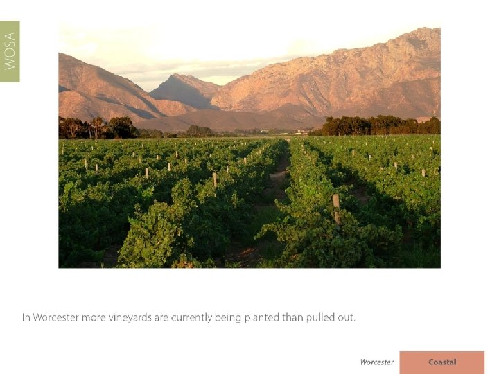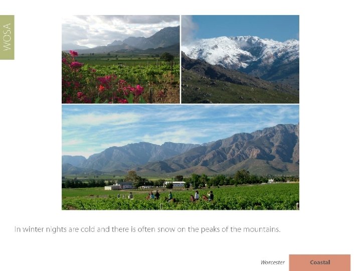 The images used in these presentations have been sourced from various producers, as well as industry and tourism bodies. These presentations are strictly for non-commercial, non-profit, educational purposes only and cannot be reproduced or transmitted in any form or by any means without written permission from Wines of South Africa (WOSA).