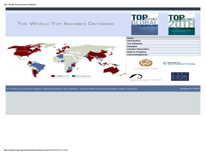 • This presentation is based upon Capital in the 21 st century (Harvard University Press, March 2014) • This book studies the global dynamics of income and wealth distribution since 18 c in 20+ countries; I use historical data collected over the past 15 years with Atkinson, Saez, Postel-Vinay, Rosenthal, Alvaredo, Zucman, and 30+ others; I try to shift attention from rising income inequality to rising wealth inequality • The book includes four parts: Part 1. Income and capital Part 2. The dynamics of the capital/income ratio Part 3. The structure of inequalities Part 4. Regulating capital in the 21 st century • In this presentation I will present some results from Parts 2 & 3, focusing upon the long-run evolution of capital/income ratios and wealth concentration (all graphs and series are available on line: see http: //piketty. pse. ens. fr/capital 21 c )