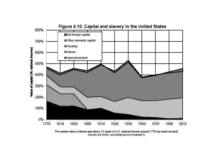 3. Inequality in America ( « meritocratic extremism » ) • Inequality in America = a different structure as in Europe: more egalitarian in some ways, more inegalitarian in some other dimensions • The New World in the 19 th century: the land of opportunity (capital accumulated in the past mattered much less than in Europe; perpetual demographic growth as a way to reduce the level of inherited wealth and wealth concentration)… and also the land of slavery • Northern US were in many ways more egalitarian than Old Europe; but Southern US were more inegalitarian • We still have the same ambiguous relationship of America with inequality today: in some ways more merit-based; in other ways more violent (prisons)