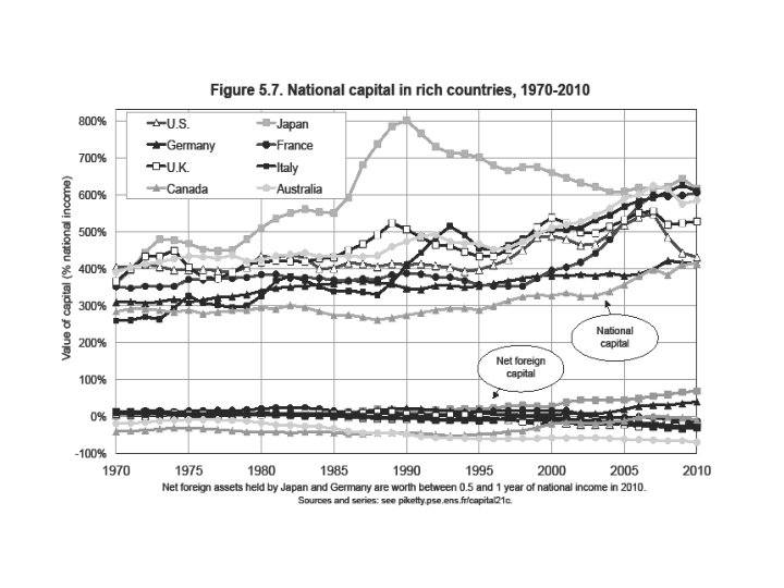 1. The return of a wealth-based society • Wealth = capital K = everything we own and that can be sold on a market (net of all debts) (excludes human K, except in slave societies) • In textbooks, wealth-income & capital-ouput ratios are supposed to be constant. But the so-called « Kaldor facts » actually rely on little historical evidence. • In fact, we observe in Europe & Japan a large recovery of β=K/Y in recent decades: β=200 -300% in 1950 -60 s → β=500 -600% in 2000 -10 s (i. e. average wealth K was about 2 -3 years of average income Y around 1950 -1960; it is about 5 -6 years in 2000 -2010) (with β≈600%, if Y≈30 000€ per capita, then K≈180 000€ per capita) (currently, K ≈ half real estate, half financial assets) Are we heading back to the β=600 -700% observed in the wealth-based societies of 18 c-19 c ? Or even more?