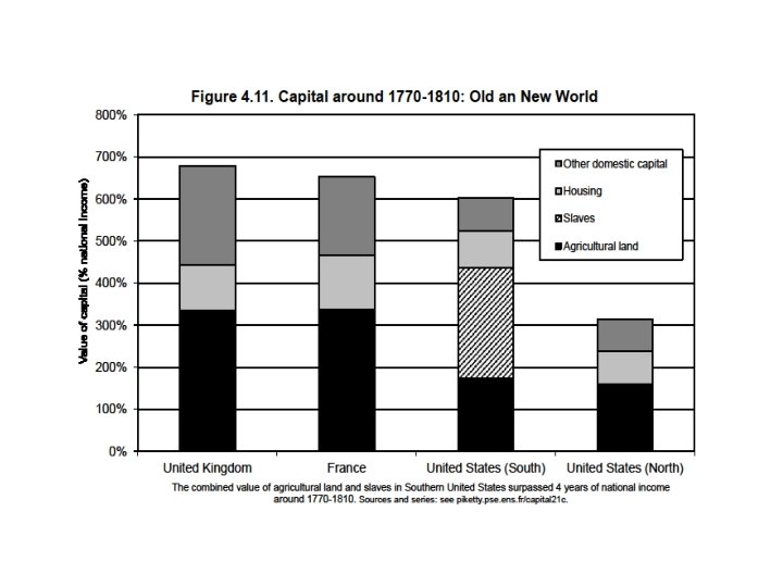 3. Inequality in America ( « meritocratic extremism » ) • Inequality in America = a different structure as in Europe: more egalitarian in some ways, more inegalitarian in some other dimensions • The New World in the 19 th century: the land of opportunity (capital accumulated in the past mattered much less than in Europe; perpetual demographic growth as a way to reduce the level of inherited wealth and wealth concentration)… and also the land of slavery • Northern US were in many ways more egalitarian than Old Europe; but Southern US were more inegalitarian • We still have the same ambiguous relationship of America with inequality today: in some ways more merit-based; in other ways more violent (prisons)