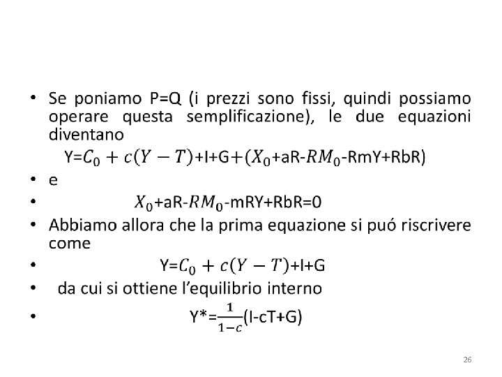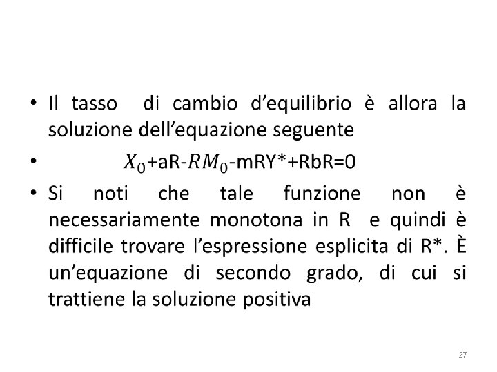 • L’approccio assorbimento • Meccanimo di aggiustamento automatico basato sui prezzi e sul reddito • Si suppone che il reddito del nostro paese sia prossimo al pieno impiego • Il reddito è dato da • Y=C+I+G+X-M • Sia A=C+I+G l’assorbimento interno • Sia B=X-M il saldo della bilancia commerciale • 28