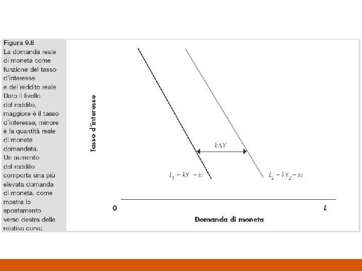 Spostamenti lungo una curva e spostamenti della curva • • Quando si afferma che una variabile è dipendente da un’altra, questo significa che al variare della variabile indipendente varia quella dipendente – Una variazione del tasso di interesse fa variare la domanda di moneta nel senso opposto (relazione inversa) Quando si considerano variazioni di grandezze non rappresentate dal modello, allora significa che l’intera curva si sposta verso destra o verso sinistra – Una variazione del reddito disponibile comporta una modifica della domanda di moneta e, a parità di tasso di interesse, l’intera curva si sposta nella stessa direzione della variazione del reddito (relazione diretta) i Da Db i 1 i 2 lb l 1 l 2 L
