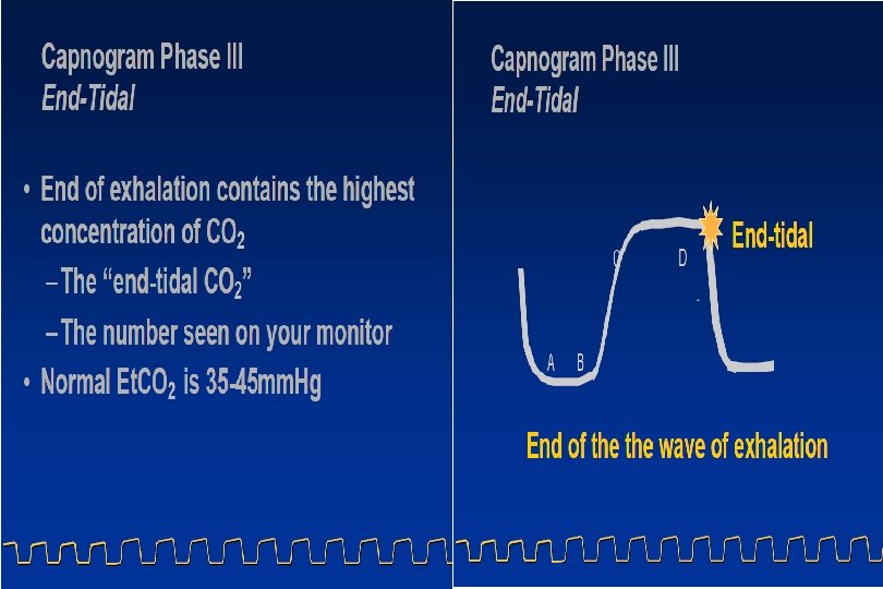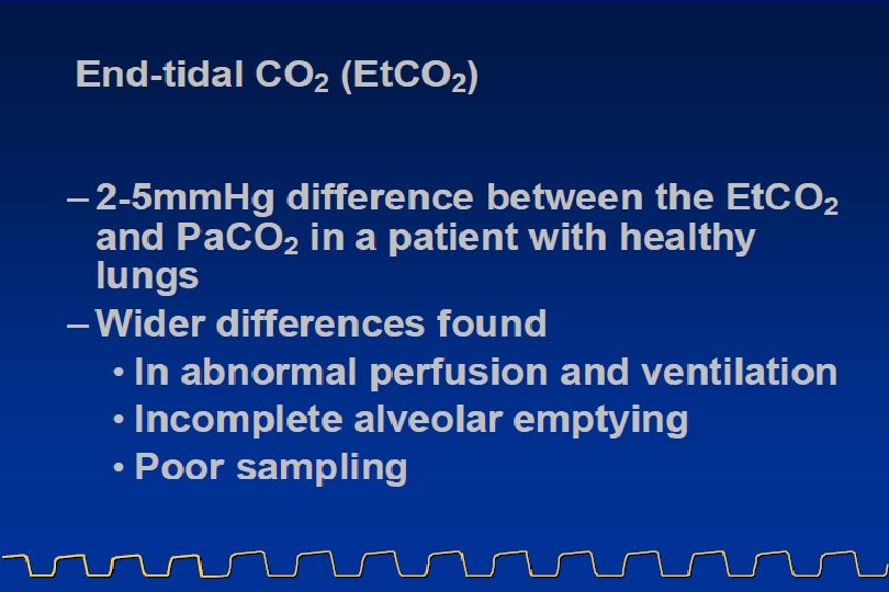 Normal Arterial and End-Tidal CO 2 Values • Normal Arterial and End-Tidal CO 2 Values : 3545 mm. Hg. • End-Tidal CO 2 (ETCO 2) from Capnograph : 3043 mm. Hg