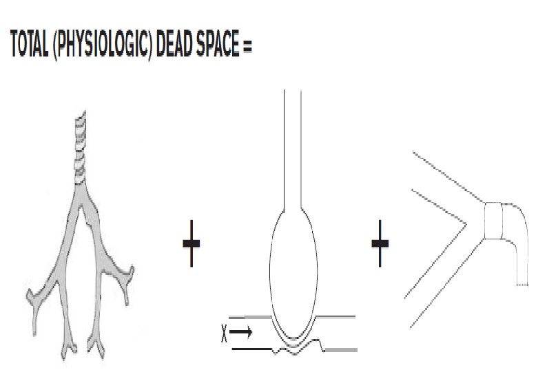 Dead Space • Dead space refers to ventilated areas which do not participate in gas exchange. • Total, or physiologic dead space, refers to the sum of : 1 - Anatomic dead space refers to the dead space caused by anatomical structures, i. e. , the airways leading to the alveoli. 2 - Alveolar dead space refers to ventilated areas which are designed for gas exchange , i. e. alveoli, but do not actually participate. This can be caused by lack of perfusion, e. g. , pulmonary embolism, or blockage of gas exchange, e. g. cystic fibrosis. 3 - Mechanical dead space refers to external artificial airways which add to the total dead space, as when a patient is being mechanically ventilated. • Mechanical dead space is an extension of anatomic dead space.