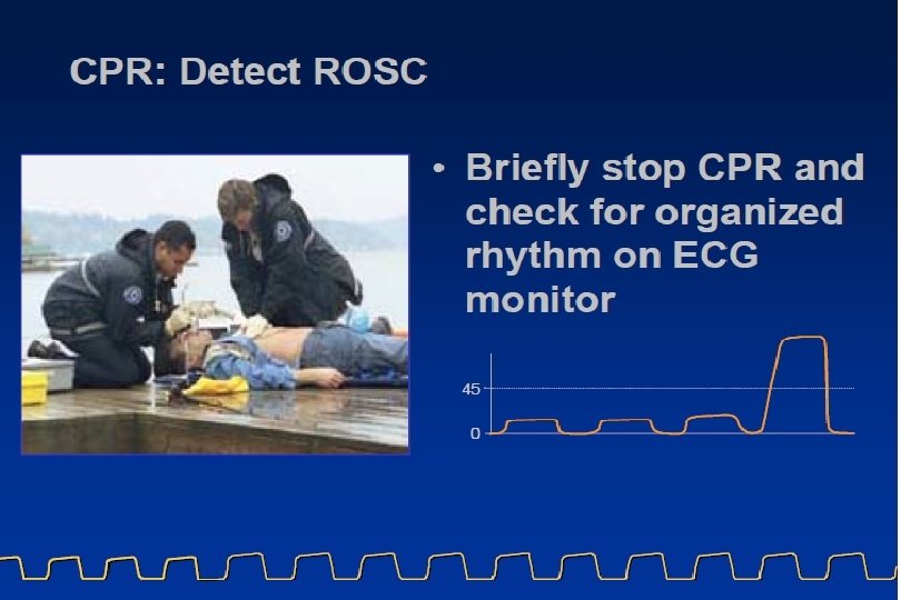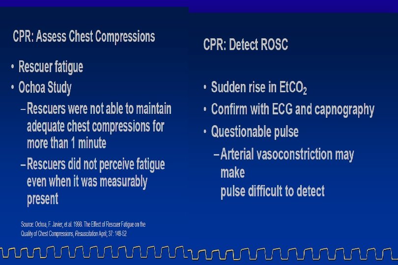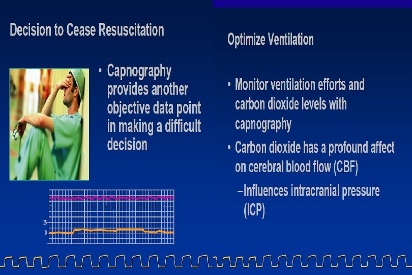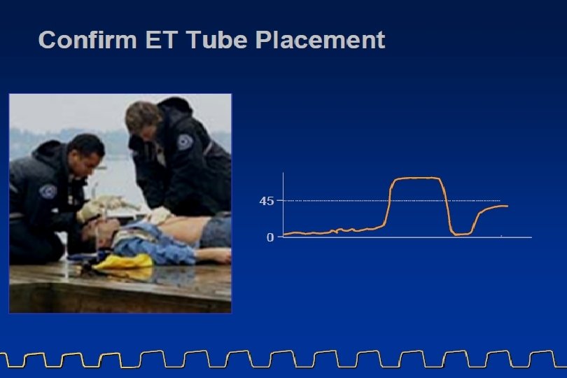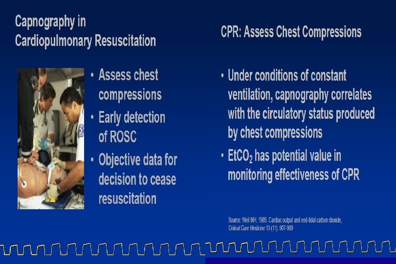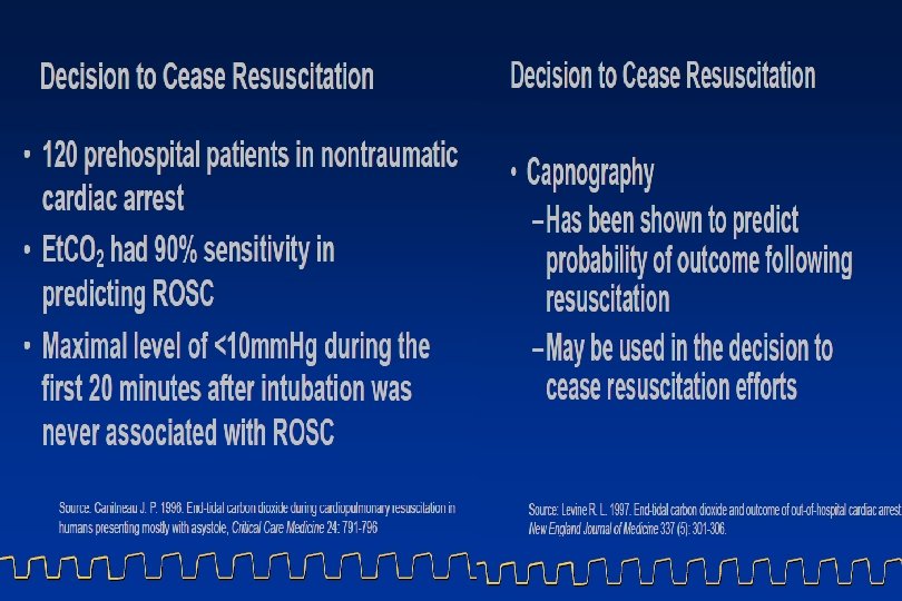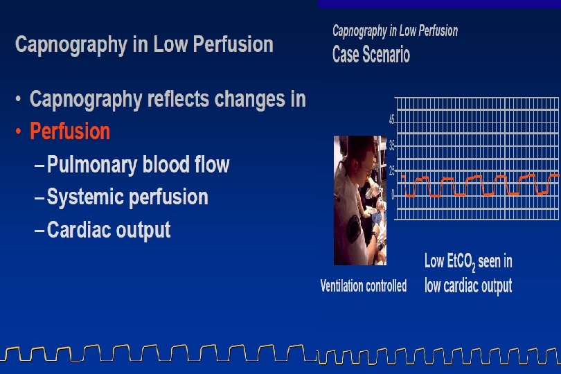 • This patient was defibrillated successfully with a return of spontaneous pulse. • Notice the dramatic change in the Et. CO 2 when pulses were restored. • Studies have shown that consistently low readings (less than 10 mm) during resuscitation reflect a poor outcome and futile resuscitation.