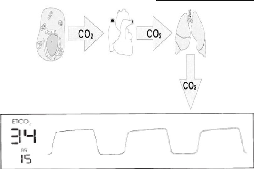 Decreasing ETCO 2 Level Possible Causes: • Increase in respiratory rate (hyperventilation) • Increase in tidal volume (hyperventilation) • Decrease in metabolic rate • Fall in body temperature