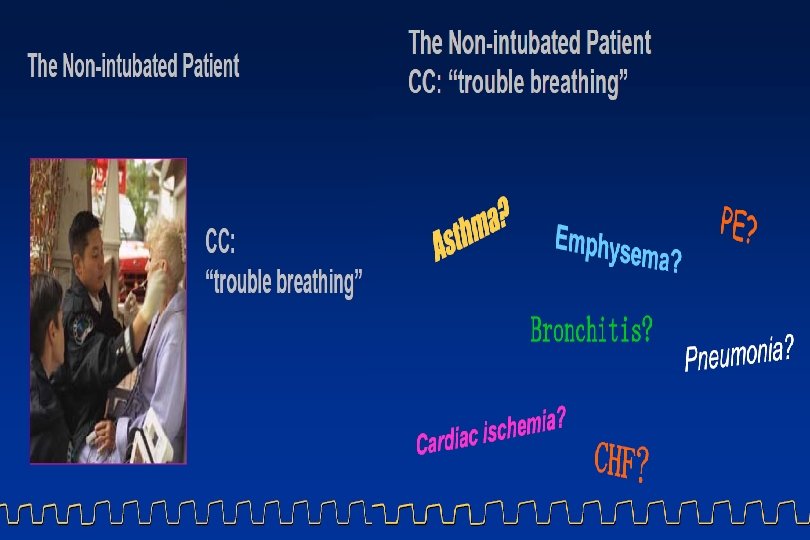 Arterial to End-Tidal CO 2 Gradient • Under normal physiologic conditions, the difference between arterial PCO 2 (from ABG) and alveolar PCO 2 (ETCO 2 from capnograph) is 2 -5 mm. Hg. This difference is termed the Pa. CO 2 – PETCO 2 gradient or the a-A DCO 2 and can be increased by: • COPD (causing incomplete alveolar emptying). • ARDS (causing a ventilation-perfusion mismatch). • A leak in the sampling system or around the ET tube. • With both healthy and diseased lungs, ETCO 2 can be used to detect trends in Pa. CO 2, alert the clinician to changes in a patient’s condition, and reduce the required number of ABGs. • With healthy lungs and normal airway conditions, end-tidal CO 2 provides a reasonable estimate of arterial CO 2 (within 2 -5 mm. Hg).