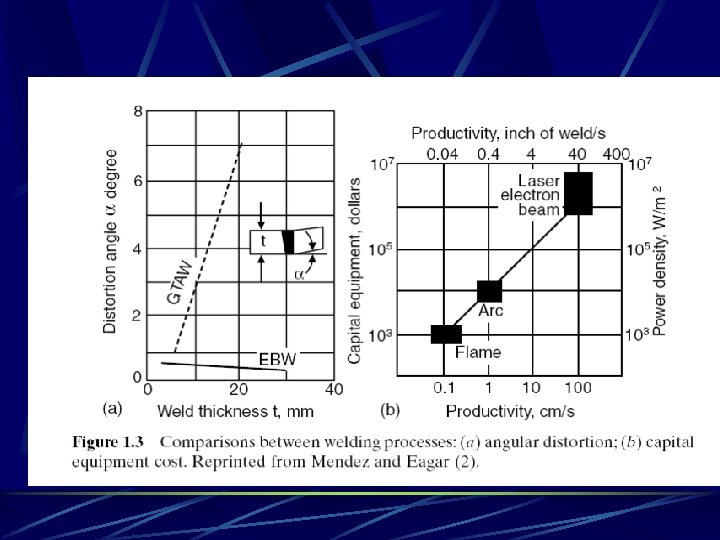 - Na soldagem por fusão o movimento físico da fonte de calor provoca as seguintes alterações: Zona fundida a) Mudança física de estado (S L S); Zona termicamente afetada b) Transformações metalúrgicas; c) Gradiente térmico (stress); d) Movimentação metálica. Como consequência, o depósito apresentará: Metal de base a) Descontinuidades físicas (severidade na velocidade de solidificação); b) Indesejadas fases (inapropriado resfriamento); c) Concentração de tensão e distorções (esforço acima da região elástica). Trinca na ZTA (região grãos grosseiros) Zona termicamente afetada Distorção
