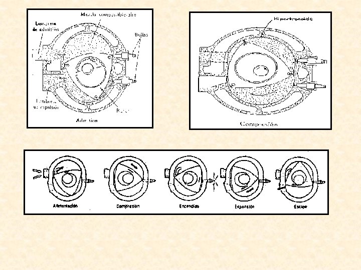 14. 10 Ciclo Wankel Este motor fue creado por el inventor alemán Félix Wankel, en 1954. Recién actualmente se tienen unos 500, 000 automóviles en todo el mundo. Es mejor que los motores a pistón, por ejemplo un motor de pistón V-8 de 195 HP tiene 1029 piezas, pesa 600 lb y ocupa 15 ft 3; mientras que un motor Wankel de la misma potencia tiene 633 piezas, pesa 237 libras y ocupa 5 ft 3. Además, no tiene válvulas !. Opera como el ciclo Otto de 4 tiempos. El nombre matemático de la forma de la cámara es epitrozoide. No tuvo mucho éxito debido a los problemas en el diseño del sello del ápice que se usaba para sellar los compartimientos, ahora con los nuevos materiales cerámicos se soluciona este problema. El Mazda RX-7 es el único auto comercial que usa este motor giratorio.