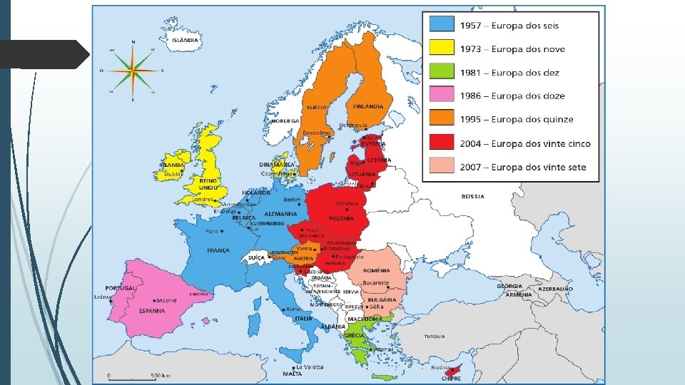A regionalização do espaço europeu Regionalização do espaço europeu utilizada durante o período da Guerra fria: • Ocidental: formada por um conjunto de países capitalistas que possuíam uma economia de mercado consolidada. • Oriental: reunia o bloco de países que eram socialistas e tinham uma base econômica planificada. Essa regionalização caiu em desuso com o fim da URSS em 1991. Outra forma de regionalizar o espaço geográfico europeu são os blocos econômicos: • União Europeia • Comunidade dos Estados Independentes (CEI) • Leste Europeu
