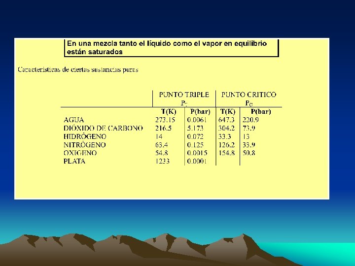 Para fijar un estado de una sustancia pura es necesario conocer por lo menos dos propiedades intensivas o específicas independientes. El término Temperatura de Saturación designa la temperatura a la cual se efectúa la evaporación a una presión dada, y esta presión se denomina Presión de Saturación. Las condiciones de presión y temperatura en que dos fases coexisten en equilibrio se denominan las condiciones de saturación. La temperatura de saturación depende de la presión, a mayor presión mayor es la temperatura de saturación y viceversa.