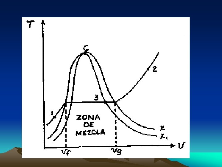 ( 1 ) Líquido comprimido o sub enfriado: (LC o LSE) Es aquel que tiene una temperatura menor que la de saturación a una presión dada. ( 2 ) Líquido Saturado: (LS) Es cuando un estado es tal que empieza a cambiar de fase líquida a fase gaseosa, es decir se inicia la evaporación. Es aquel que se encuentra a la temperatura de saturación correspondiente a su presión. Todos estados constituyen la línea de líquido saturado. ( 3 ) Vapor Húmedo o mezcla líquido-vapor: (VH) Es aquel que contiene líquido más vapor en equilibrio