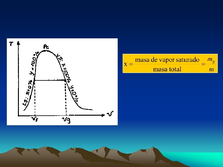 m = mg + mf Subíndice g (gas): propiedad de vapor saturado. Subíndice f (fluido): propiedad de líquido saturado.