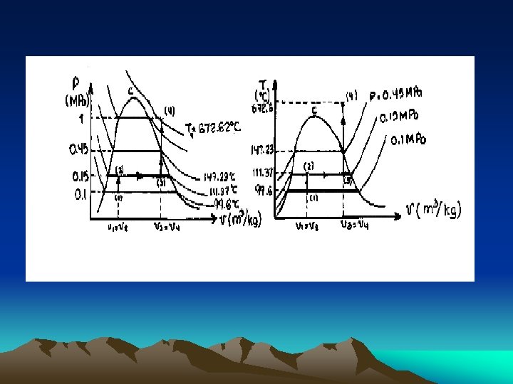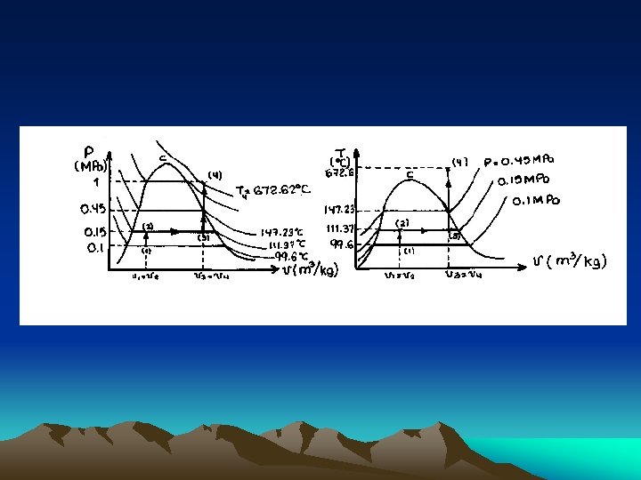 4. Determine los estados en que se encuentra el sistema constituido por agua y ubíquelos en los diagramas P-v y T-v para las condiciones siguientes: a) P=500 k. Pa T= 200°C ESTADO: ______ b) P=5 Mpa T=264°C ESTADO: ______ c) P=0. 9 MPa T=180°C ESTADO: ______ d) P=20 MPa T=100°C ESTADO: ______ e) P=1 k. Pa T=-10°C ESTADO: ______ 5. Determine el título de las mezclas bifásicas siguientes (líquido-vapor) a) H 2 O T=200°C v=0. 1 m 3/kg x= ______ b) R 12 P=2 bar v=0. 7 m 3/kg x= ______ c) R 134 a T=-40°C v=0. 3569 m 3/kg x= ______