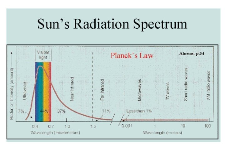 A quantidade E , b é a radiação emitida por uma superfície plana para o hemisfério (isto é, 180º sobre ela) por unidade de comprimento de onda, no comprimento de onda . Ou seja, um corpo negro a uma certa temperatura emite alguma radiação por unidade de comprimento de onda em todos os comprimentos de onda de zero ao infinito, mas não a mesma quantidade de radiação em cada comprimento de onda.