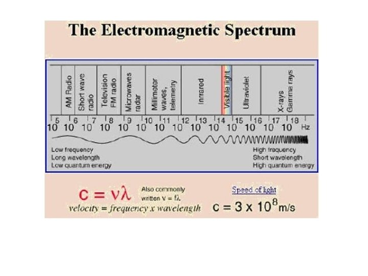 Comprimento de onda (m) = Velocidade da luz (m/s) Frequência (Hz=1/s)