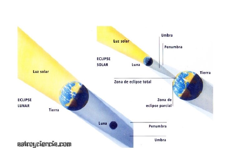 ECLIPSES DE SOL Se producen durante la fase de luna nueva, cuando la Luna se interpone entre el Sol y la Tierra Eclipse parcial Eclipse total