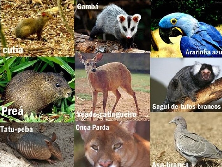 Cachorro-vinagre Morcego Paca Mico-leão dourado Cotia