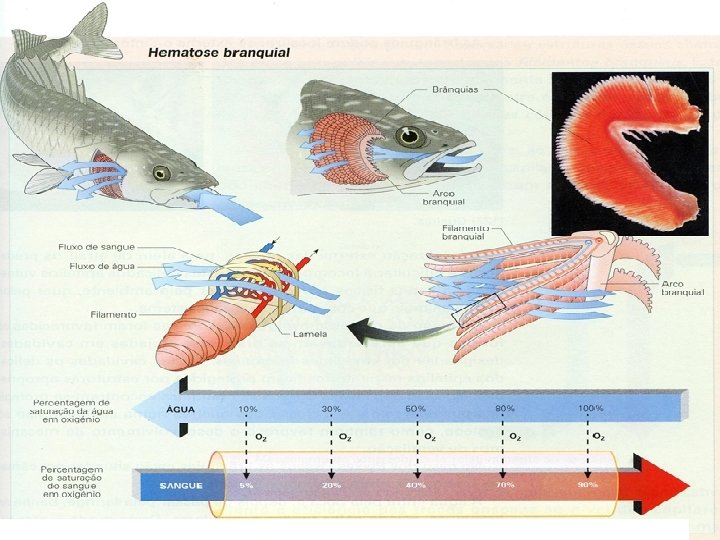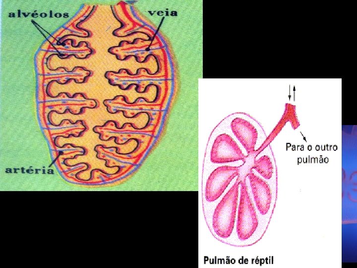Características das superfícies respiratórias Apesar da grande diversidade das superfícies respiratórias, é possível encontrar em todas elas um conjunto de características que aumentam a eficácia das trocas que lá ocorrem: • são superfícies úmidas → o que permite a dissolução, necessária à difusão dos gases; • são superfícies finas → constituídas apenas por uma camada de células epiteliais; • são superfícies vascularizadas, no caso da difusão indireta; • possuem uma área grande relativamente ao volume dos órgãos em que se situam.
