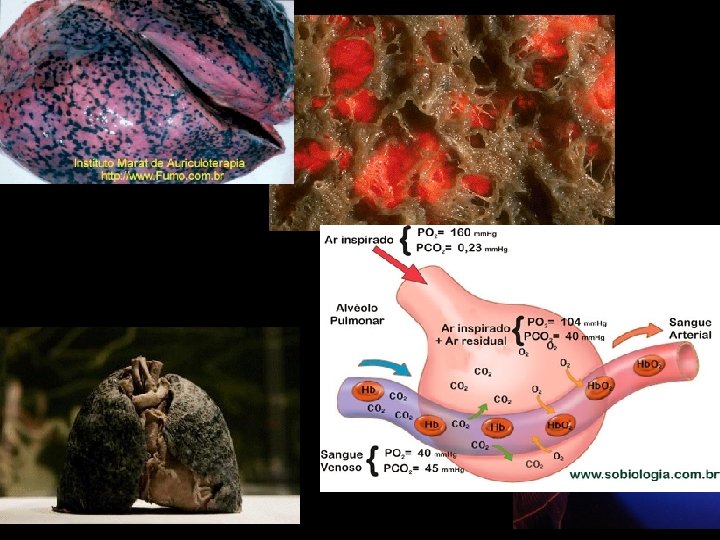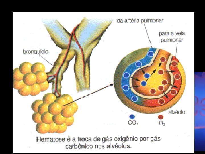 Gás Concentração no ar O 2 CO 2 21% 0, 03% Fração X Pressão atmosférica 0, 21 X 760 mm. Hg 0, 003 X 760 mm. Hg Pressão parcial = 160 mm. Hg = 0, 23 mm. Hg