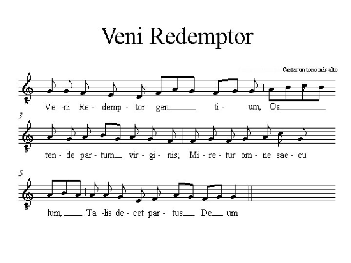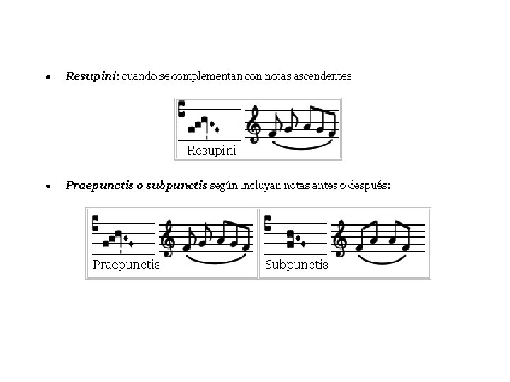 Notas simples • Se presenta aquí , en su orden, la notación primitiva, la notación actual gregoriana y su equivalente en la notación moderna. • Virga= Vara; Punctum quadratum=punto cuadrado, Punctum inclinatum=punto inclinado.
