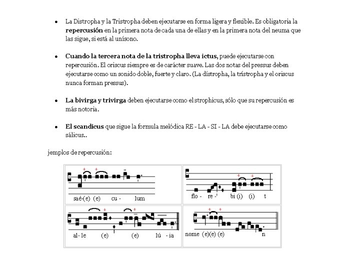 La notación neumática • • Sistema de notacion musical que consistía en una serie de signos gráficos que representaban uno o varios sonidos , especificando su número, su relación rítmica o articulatoria, y la situacion tonal o melodica de los sonidos relativa e imprecisa dentro de una escala. Su origen está en la indicación de los acentos graves y agudos de las palabras latinas sobre el texto, formando los llamados neumas, y que representaban muy imperfectamente los giros melódicos de una pieza musical. Los signos neumáticos son figuras gráficas dibujadas para expresar diversos contenidos prosódicos y sintácticos (acentos y signos de puntuación), que pasaron a ser melódicos (de tono), rítmicos y tímbricos. Por ejemplo, el acento agudo pasó a representarse por un trazo vertical (la. Virga) y el acento grave por un ángulo Torculus