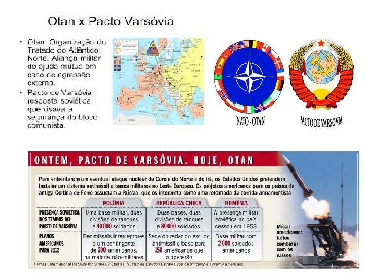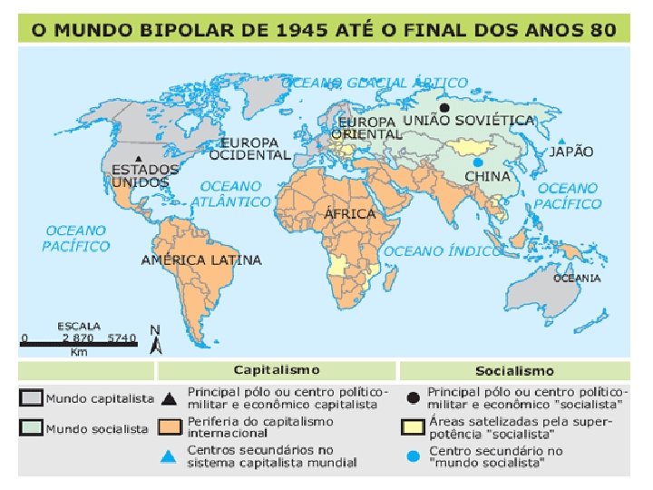 LESTE X OESTE = período da Guerra Fria, onde o LESTE compreendia os países socialistas e o OESTE compreendia os países capitalistas.