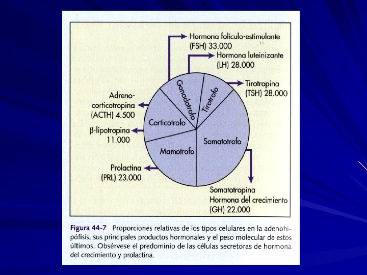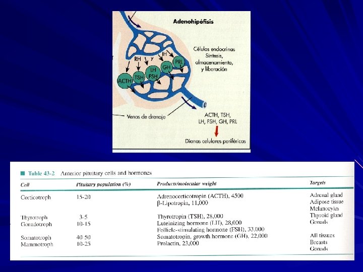Hormonas Liberadoras Hipotálamo Adenohipofisis --------------------------------------------- • Somatotrofina (GH-RH) ↑ GH • Tirotrofina (T-RH) ↑ TSH ↑ Prolactina (PRL) • Corticotrofina (C-RH) ↑ ACTH ↑ B lipotropina ↑ B endorfina • Gonadotrofinas (Gn-RH) ↑ FSH ↑LH