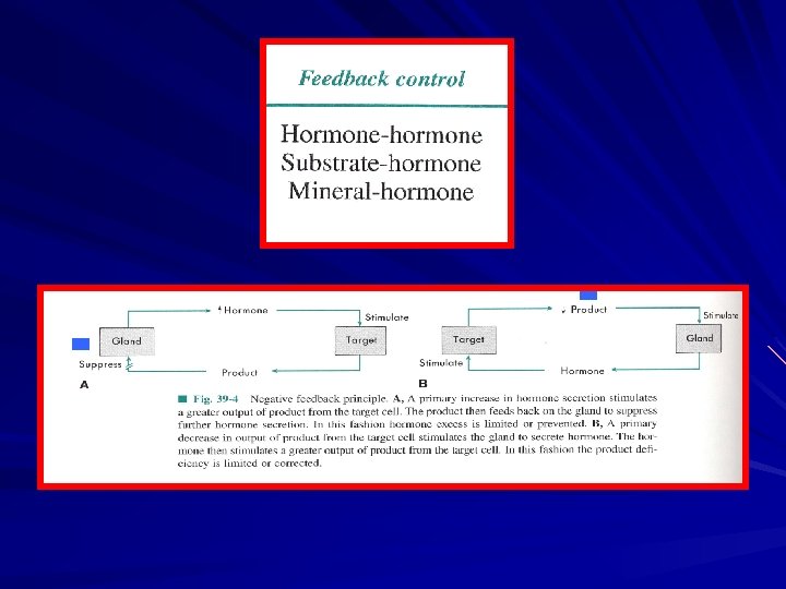 Regulación hormonal : FEED-BACK- NEGATIVO HORMONA GLÁNDULA PRODUCTO CÉLULA TARGET